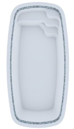 Piscina de diseño tradicional con acabados curvos, escalera de 3 peldaños y cómoda banca.